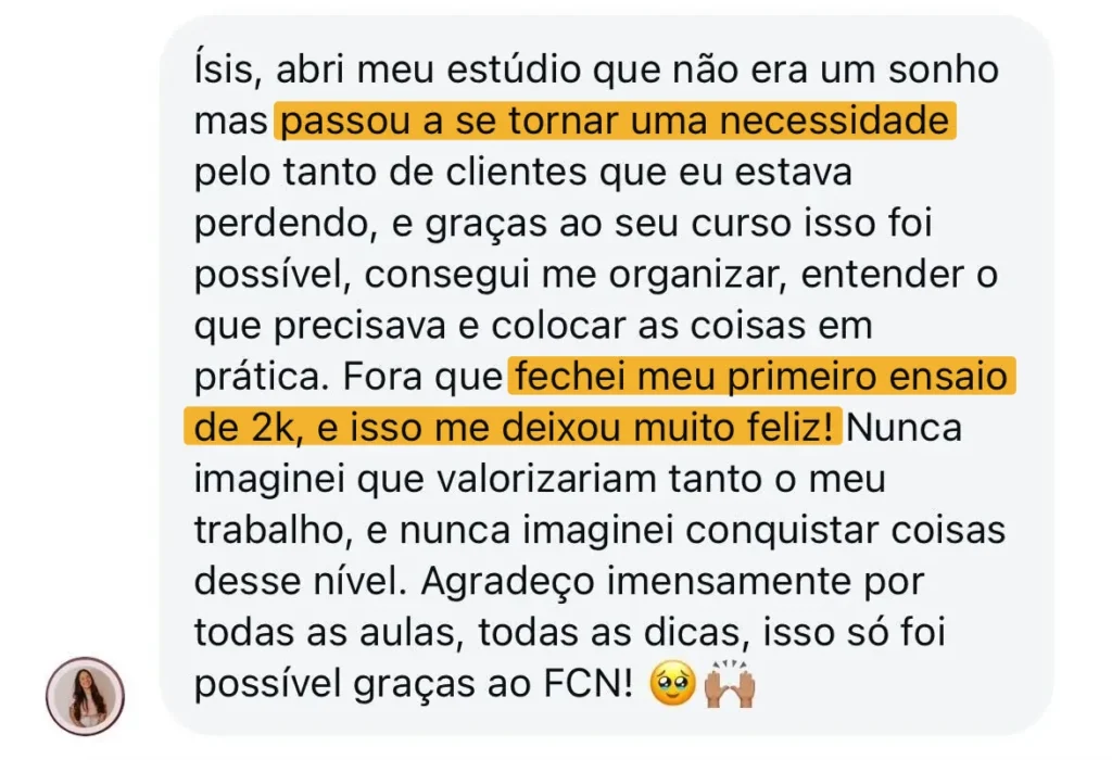 Agora vou te ensinar, em apenas 2 horas, a decidir sobre seu estúdio – com segurança, clareza e sem erro. Vou te mostrar tudo o que aprendi errando (e acertando) no meu próprio estúdio. Pra você não precisar aprender do jeito mais difícil.